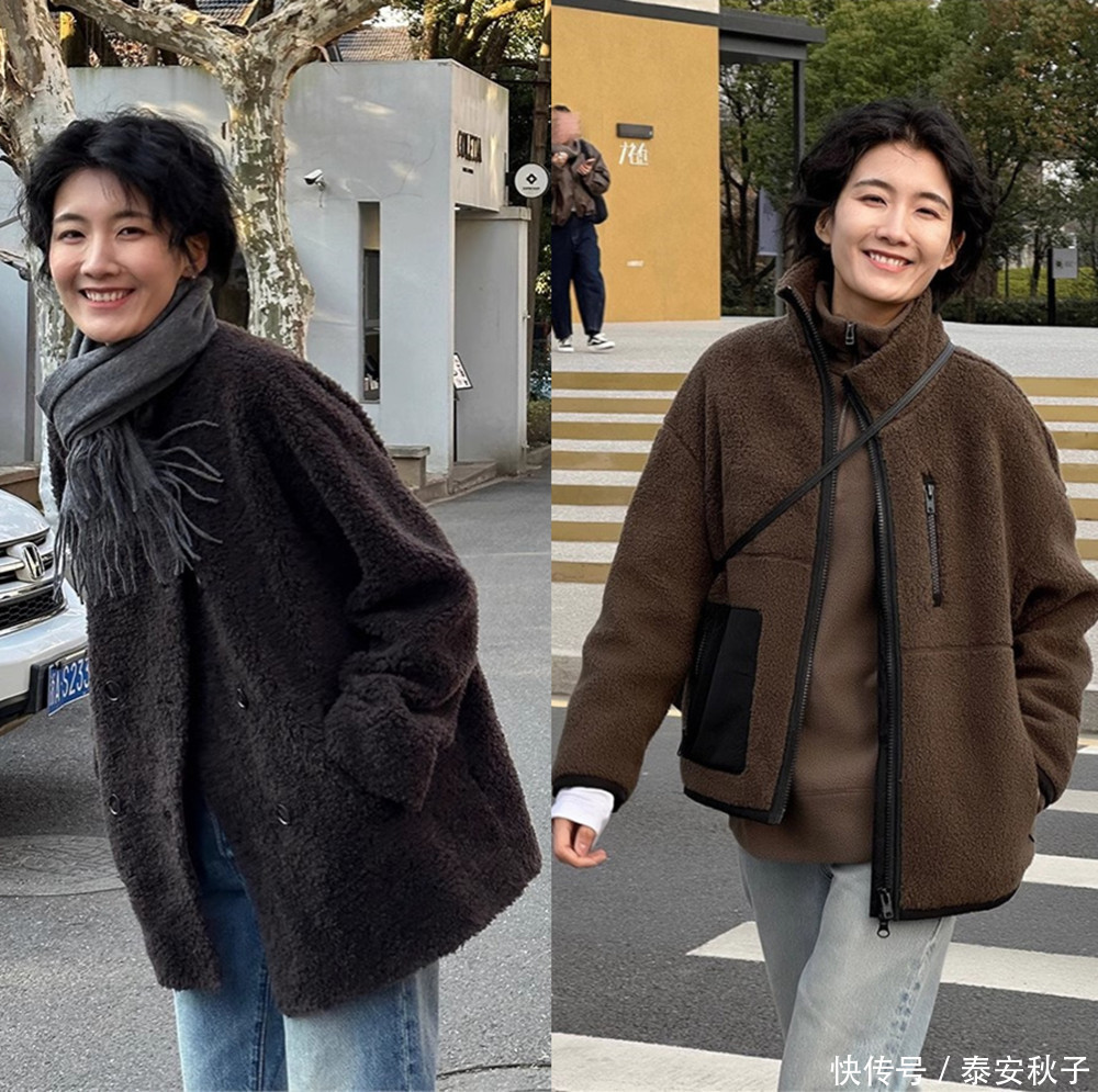 虽说毛绒外套有显胖、显廉价的嫌疑?但是,只要我们选择这种深色调的质感毛外套来搭配,便可演绎出松弛有度又保暖显瘦的效果。